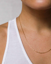 Our mini gold filled paperclip chain is a great option for a lighter layering chain. Looks great on it’s own, with charms or as a part of a layered look.
